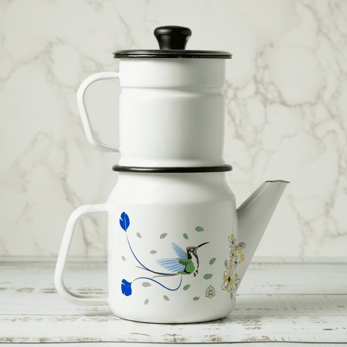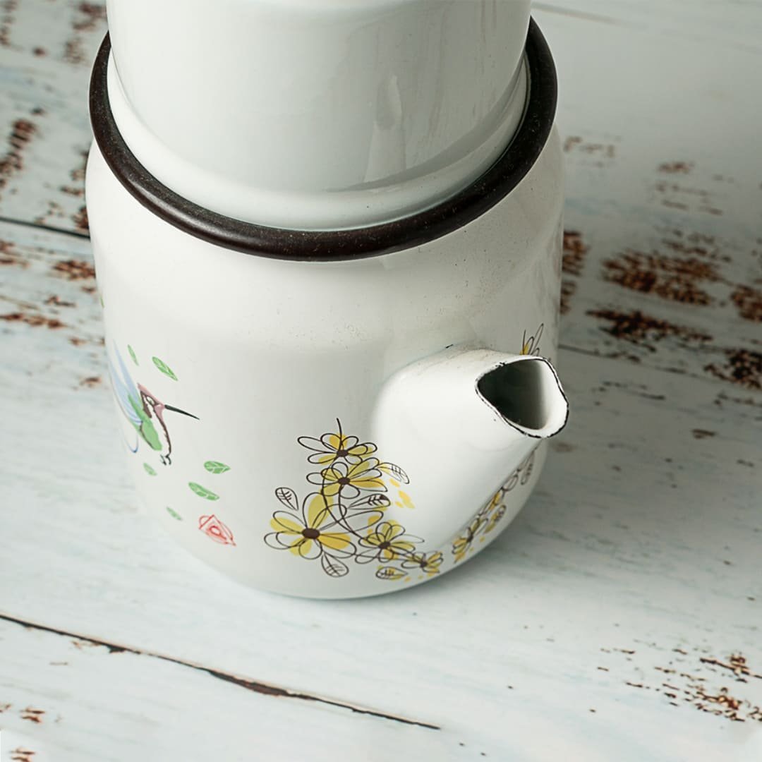 Embellece tu cocina con la elegancia del blanco y los diseños de flores y colibrí de esta cafetera. Además de su estética, su superficie lisa y materiales de calidad garantizan una limpieza fácil y duradera.