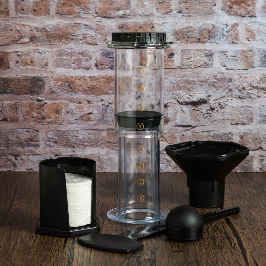 Portabilidad y calidad: Disfruta de café de alta calidad en tus aventuras con nuestra Aeropress Clear. Su diseño portátil y compacto te permite llevarlo a donde quieras, sin sacrificar la calidad del café.