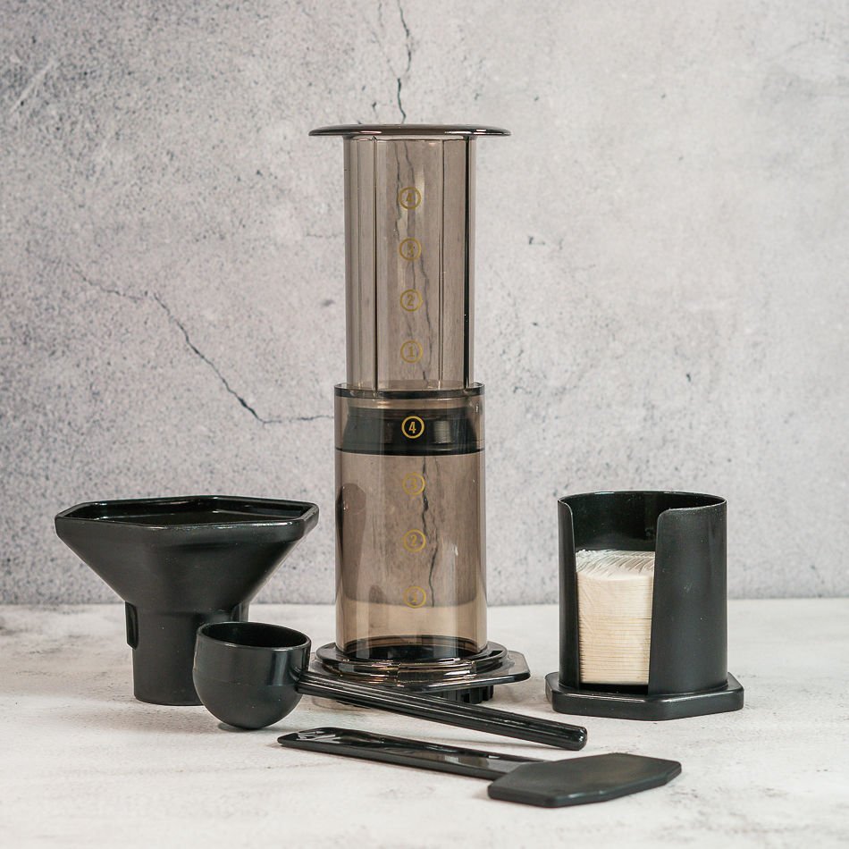 Con la Aeropress Gray, recibirás todo lo necesario para empezar a disfrutar de tu café favorito de inmediato. Desde una cuchara y un agitador hasta 350 microfiltros de papel, estamos seguros de que esta será tu nueva compañera de café.
