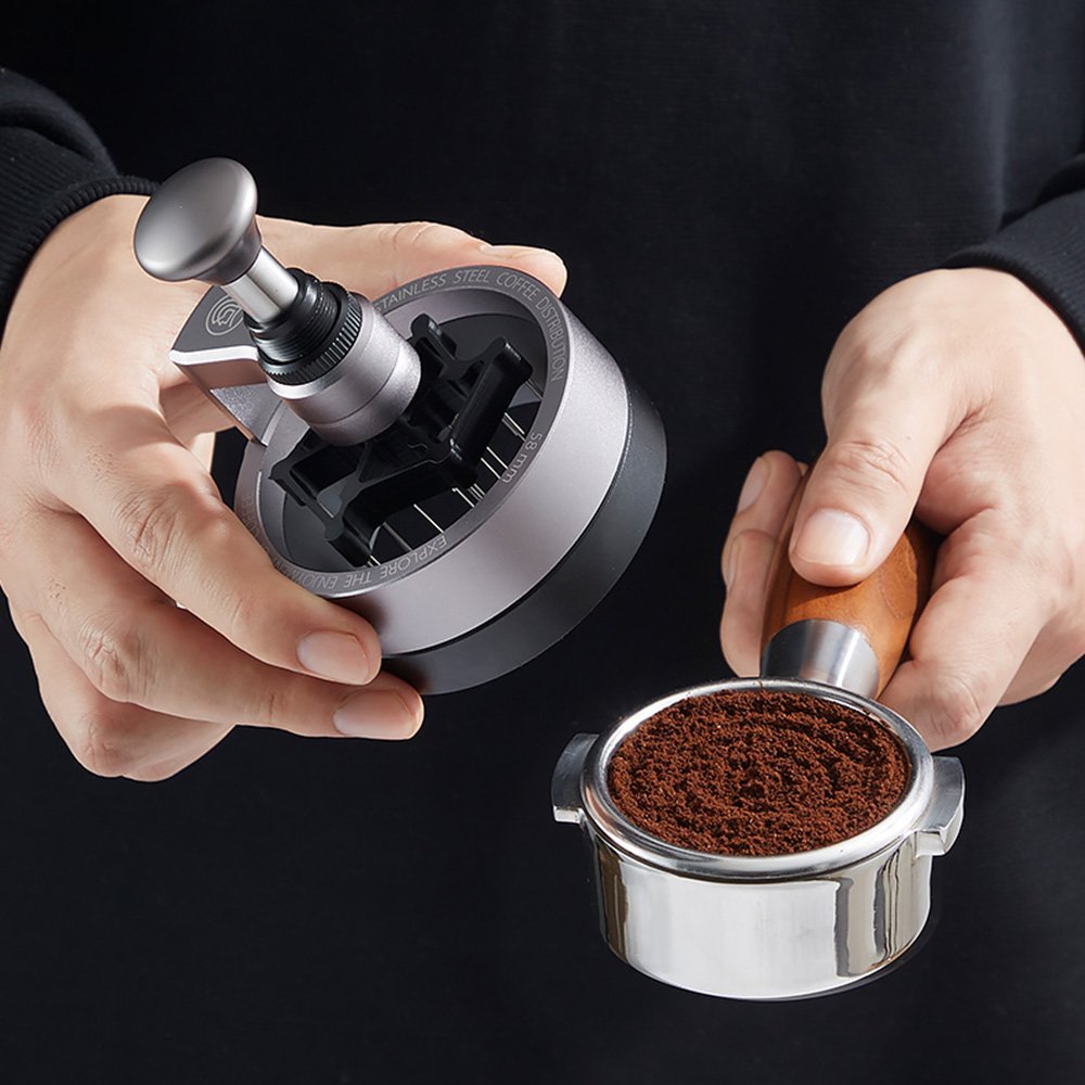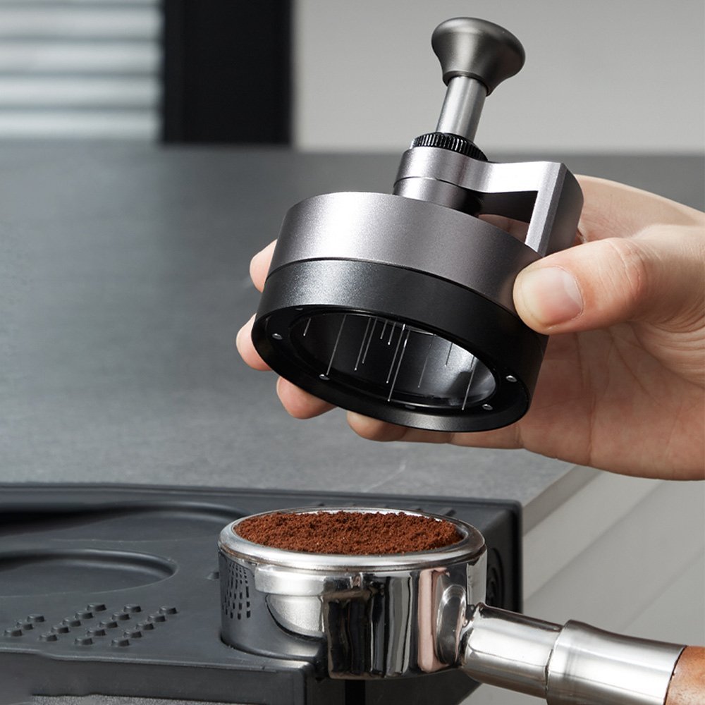 Descompone grumos y nivela el café en el portafiltro antes del apisonado, mejorando la uniformidad de la extracción.