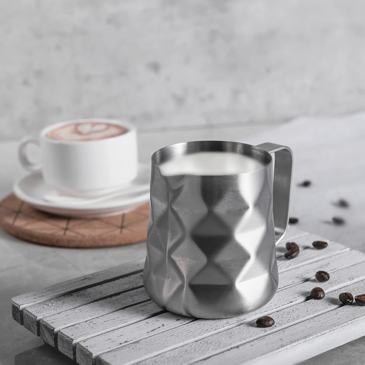 Con la Jarra Latte Art Prismática de 350 ml, cada vertido se convierte en una obra maestra. Su diseño prismático único añade un toque de creatividad a tus bebidas.