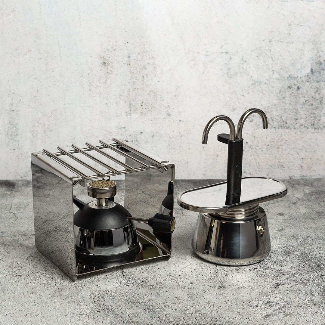 Equipo perfecto para los amantes del café que quieren disfrutar de una experiencia de preparación de café al aire libre. Incluye una moka doble de acero inoxidable de 200 ml para preparar café italiano tradicional, una estación de quemadores para calentar el agua y un quemador de gas Tiamo para cocinar en cualquier lugar. Con este pack, podrás disfrutar de un café de calidad en cualquier momento y lugar. Hecho con materiales de alta calidad, este equipo es duradero y fácil de limpiar. ¡Invierta en su experiencia de café y lleve su barista aventura al siguiente nivel con este pack barista aventurero!