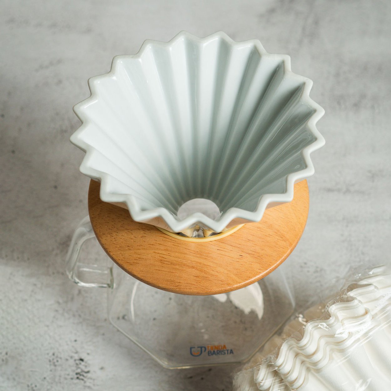 Descubre la excelencia en cada taza: Sumérgete en el mundo del café japonés con nuestro Kit Origami Blanco. El Dripper Origami de 4 tazas te garantiza una extracción uniforme, mientras que la Jarra Diamante de 600 ml y los 50 Filtros Ondulados elevan la pureza de cada gota.