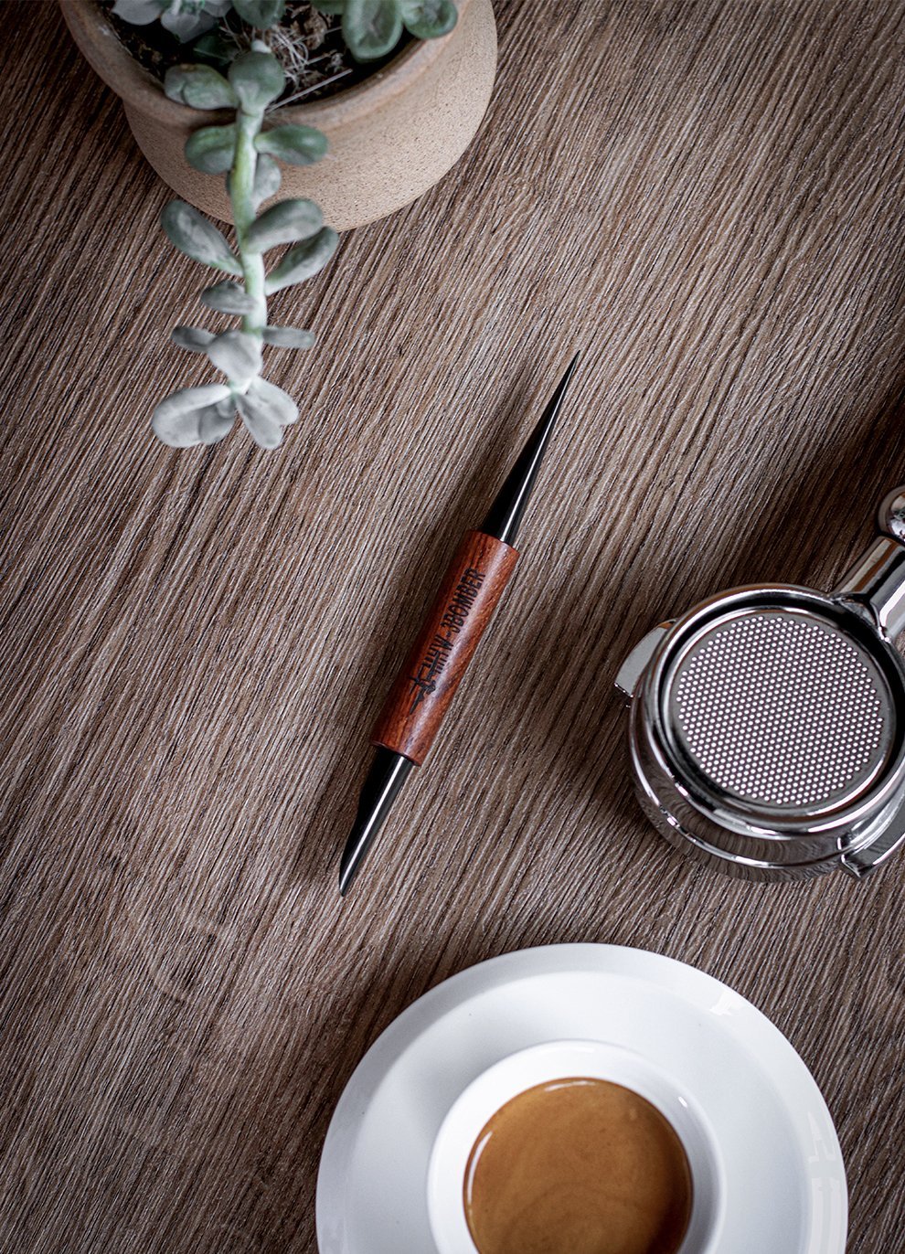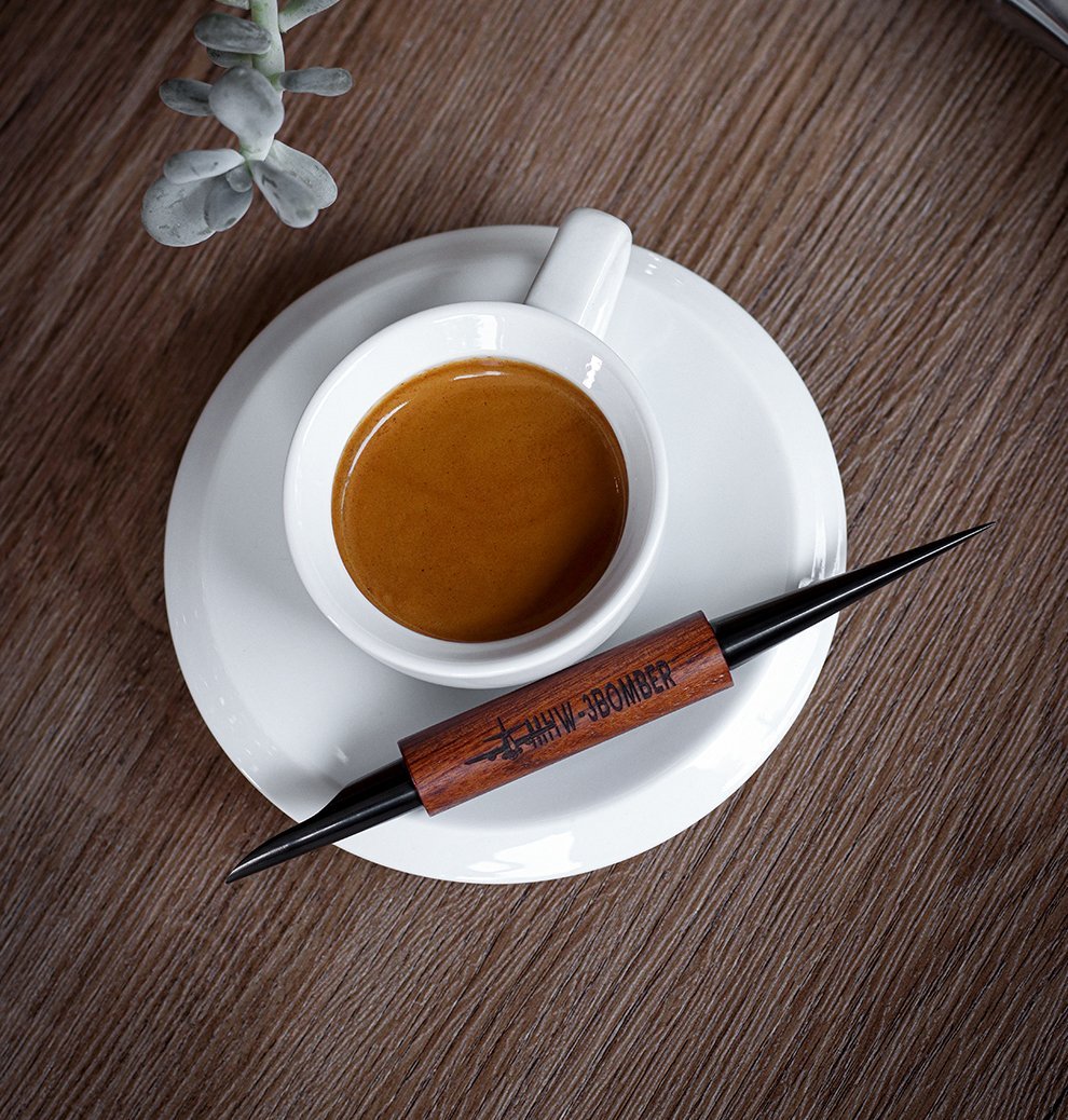 Este lápiz para arte en café te permite dibujar líneas delicadas y precisas gracias a su aguja fina. El mango de madera proporciona un agarre cómodo y el acero inoxidable asegura durabilidad. Es la herramienta ideal para baristas que desean agregar un toque artístico a sus preparaciones o para quienes quieren explorar el arte del latte en casa.