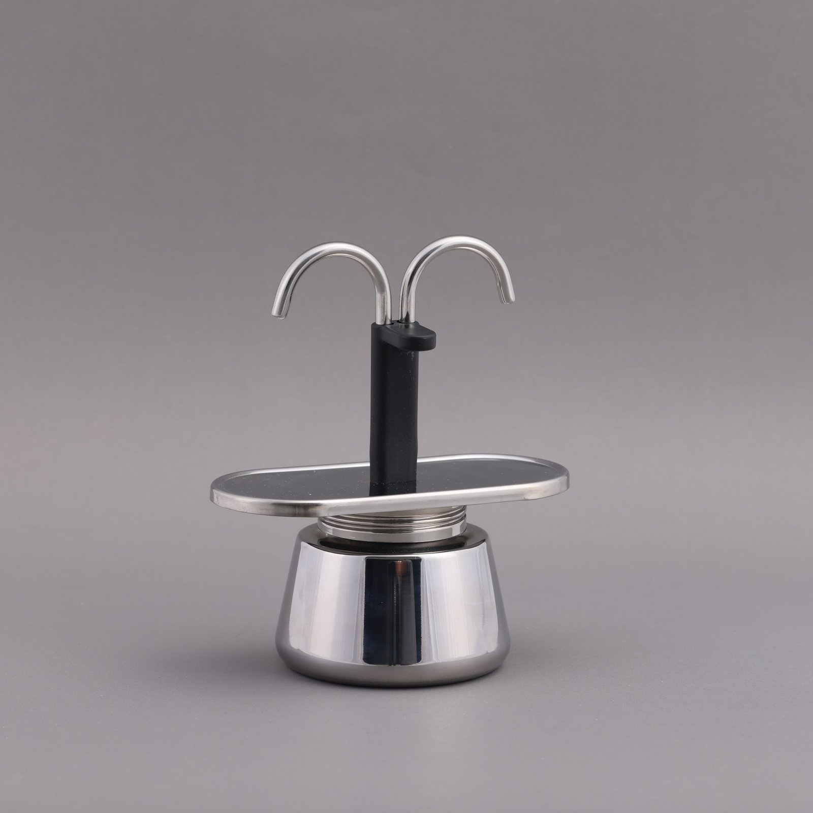 Sumérgete en la excelencia con nuestra Moka Doble tubo de Acero Inoxidable 2 Tazas. Hecha con material de primera calidad, garantiza durabilidad y resistencia a la corrosión.