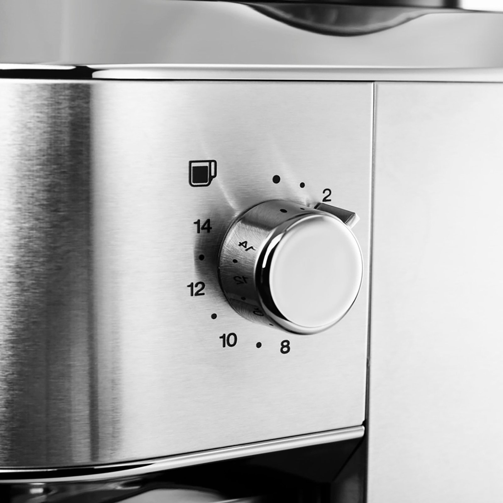Selector de tazas (1 a 14) para moler solo la cantidad necesaria.