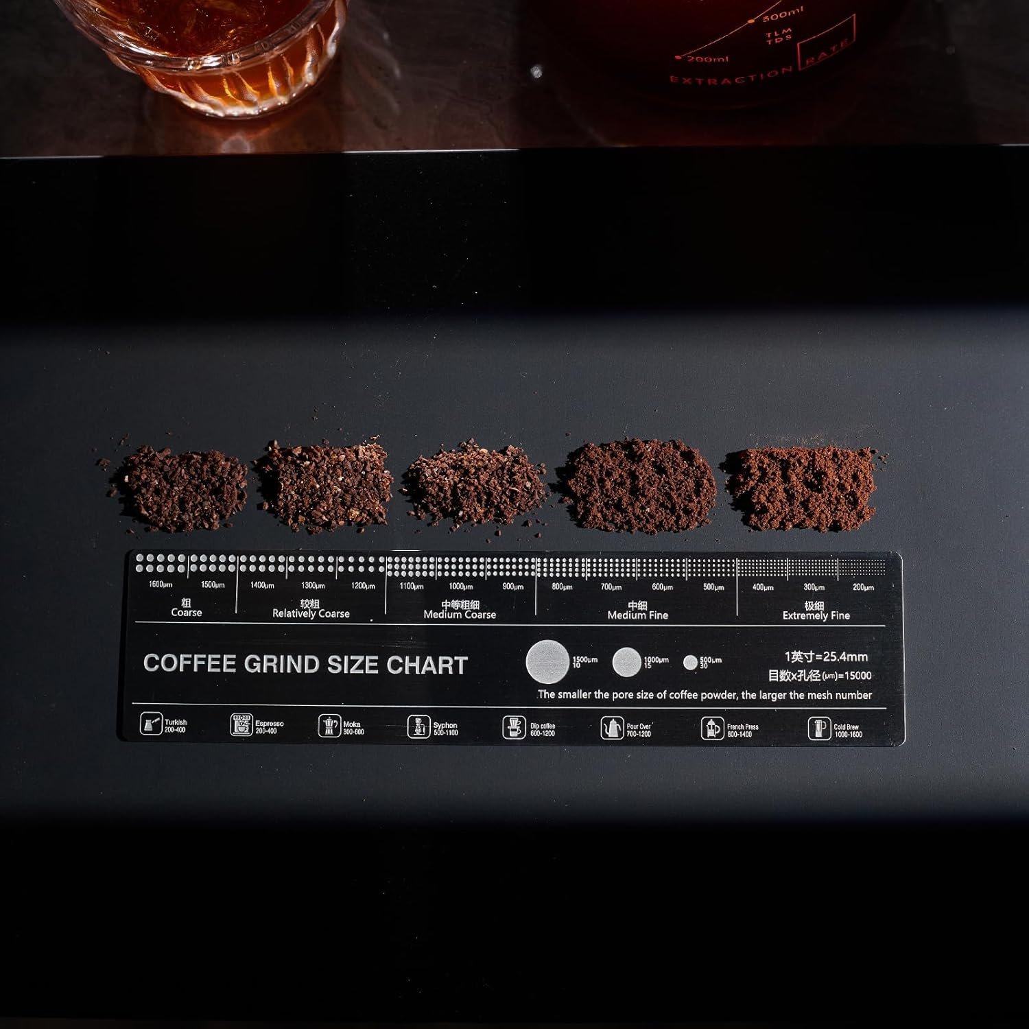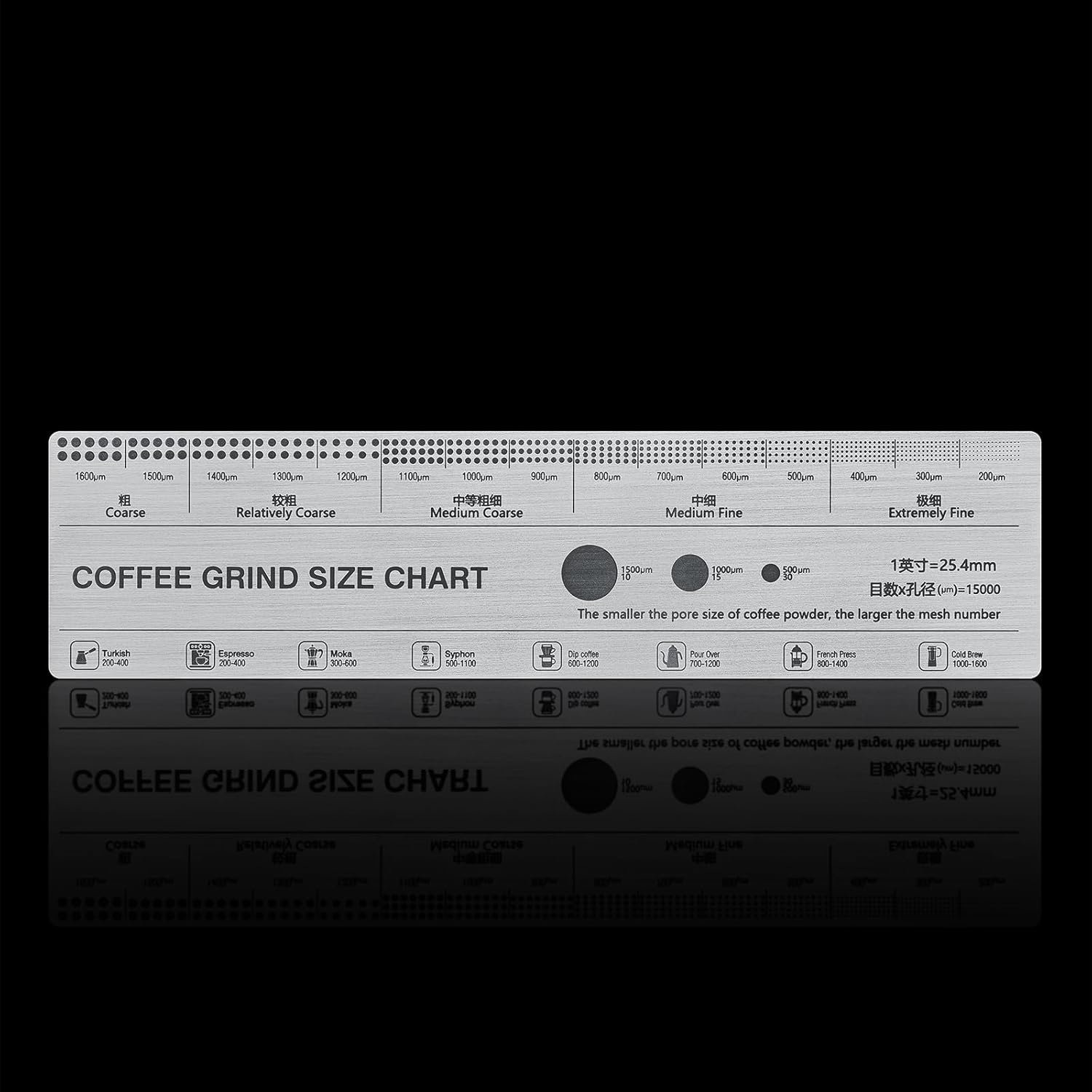 ✔ Escala de referencia precisa, desde molienda gruesa hasta extrafina.